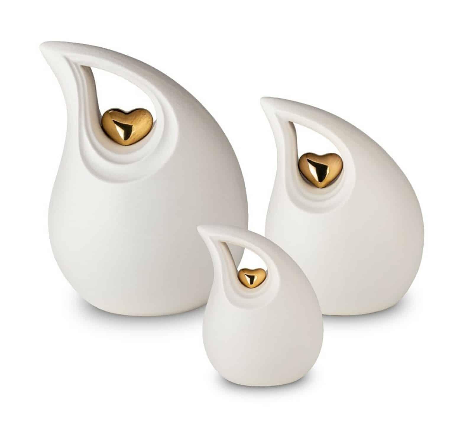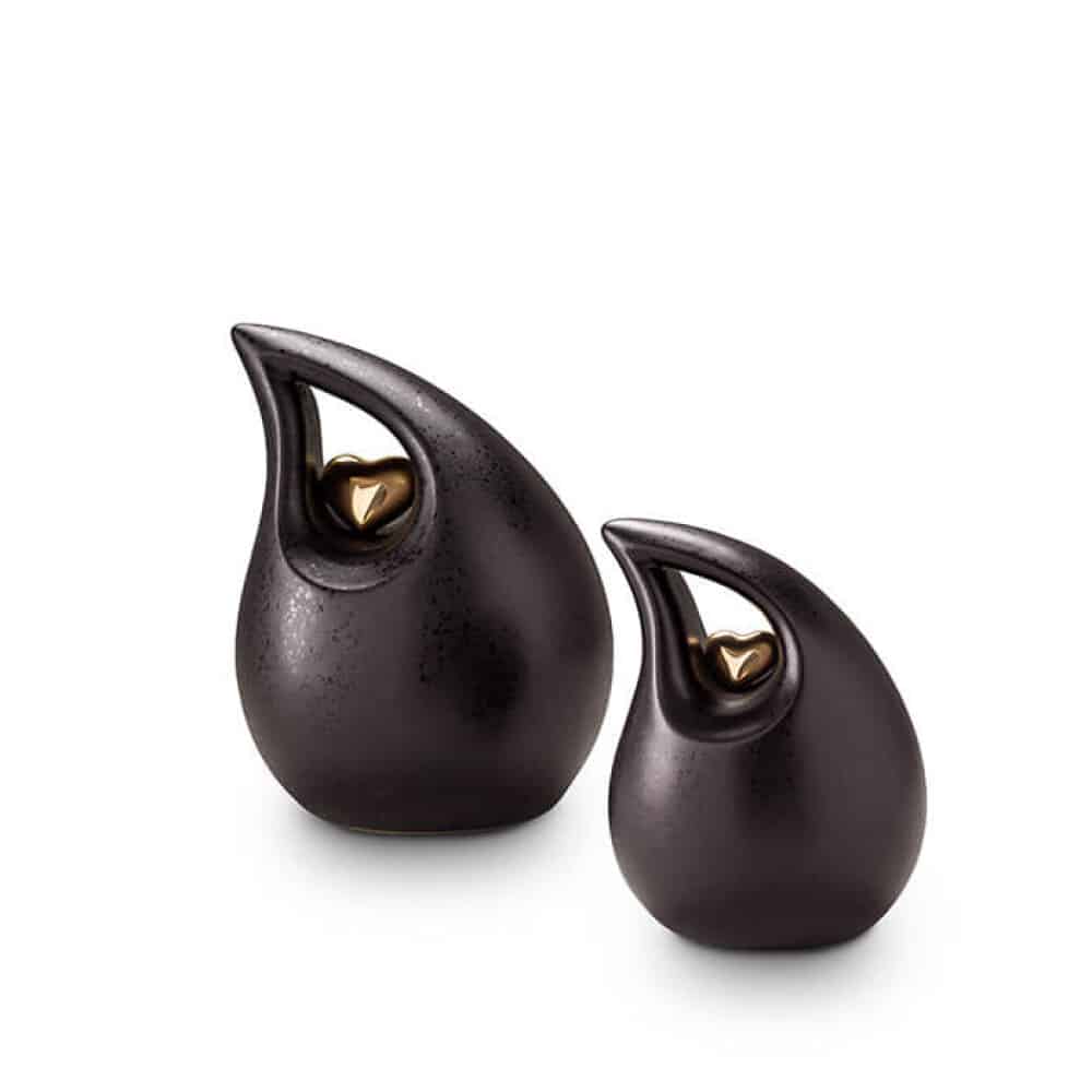 Urne in keramiek – afgewerkt met emaille in mat zwart en een gouden hartje